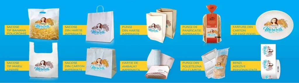 Alege materialul de ambalare in functie de tipul de produs. Paine alba, franzele, baghete: hartie kraft natur. Paine feliata pentru pastrare mai indelungata: punga stand-up din hartie cu strat interior. Produse de patiserie: cutii din carton microondulat cu perforatie pentru aerisire.